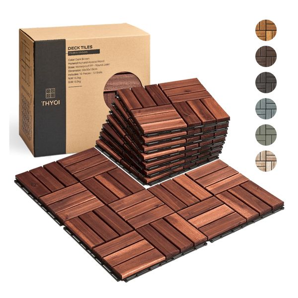 THYOI interlocking deck tiles are made from 100% natural acacia wood and PPC base, which are super sturdy and water-proof to endure outdoor conditions. Under top-notch craftmanship, these patio tiles boast impressive smooth on the surface, firmness when step on and premium aesthetic look. There are 5 colors available and more to come for you to get the most matching one with indoor or outdoor design.