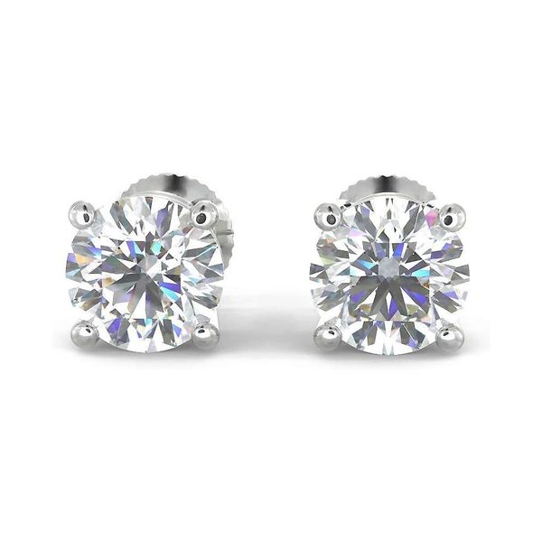 Beautifully and meticulously matched, these natural mined solitaire diamond stud earrings feature handset round diamonds in 14k white gold setting with screw backs for a more secure fit. Each diamond weighs roughly 1/4 carat for a total weight of 1/2 carat.