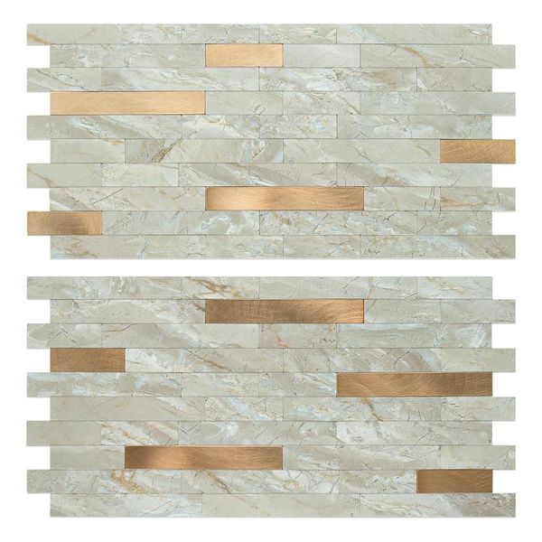 20 sheets solid PVC mixed metal tiles, 11.7″x5.9″x0.12″ each, covering about 9.6 square feet.