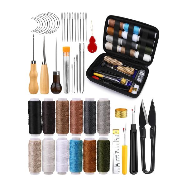 Perfect Heavy Duty Sewing Kit: This fully-packed sewing kit contains all the necessary tools to sew for most of your sewing needs. You will get: 25* Hand Sewing Needles, 12* Upholstery Thread, 1* Inch Ruler, 1* Scissors, 1* Thimble, 3* Awl Tool, 2* Seam Ripper, 1* Threader.