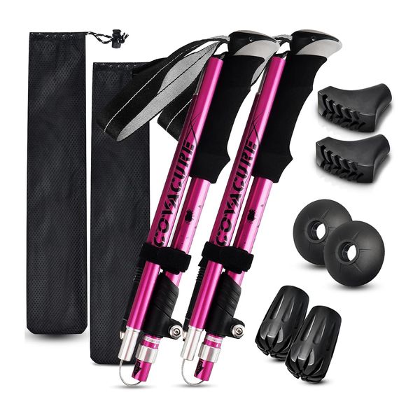 Covacure Hiking poles provids telescopic and foldable tri-fold design. So that you can freely adjust the lenght from 39.4″/100cm to 47.2″/120cm to fit your height comfortably after easy installing. What’s more, they are easy to be folding down less than 14″/35.5cm to store in your backpack, luggage cases, or duffel bags.