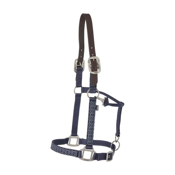 Our Dover Saddlery Ribbon Trim Halter features our signature Bit-by-Bit equestrian pattern ribbon overlaid on the noseband and cheeks.