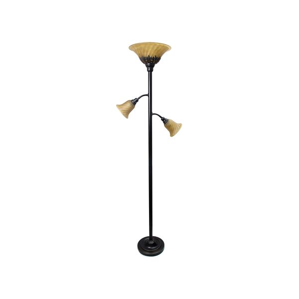Light up your bedroom, office, foyer or living room with this elegant yet affordable 3 light floor lamp. It features a stunning restoration bronze finish and marbelized champagne shades with spiraled cut glass to complete the timeless look.