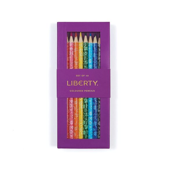 Liberty London is known for its floral and graphic prints and the offering of innovative and eclectic designs. The Liberty Capel Colored Pencil Set features 10 colored pencils with printed designs on each.