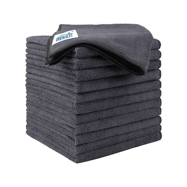 HOMEXCEL Microfiber Cleaning Cloth 12 Pack, 12.5 x 12.5 inch Microfiber Towels for Cars, Ultra Absorbent Washing Cloth, Lint Free Streak Free Cleaning Rags for Car, Kitchen, and Window (Grey).