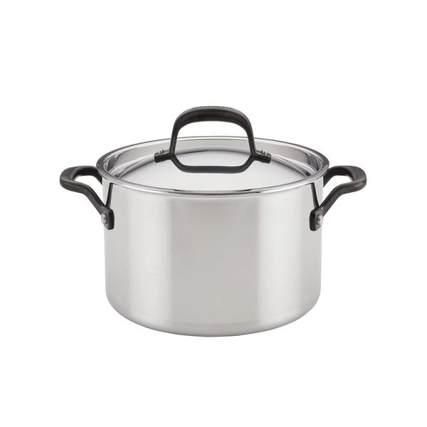 Build layers of flavor with the KitchenAid 5-Ply Clad Stainless Steel 6 quart stockpot. It is designed for precision cooking and heat conduction. The stainless steel lid locks in heat and flavor to get the most out of every ingredient. Broiler safe without lid.