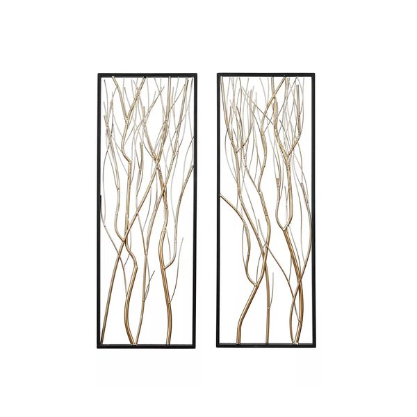 Are you looking for elegant wall decor to improve your home ensemble? This art piece set is a good choice to change any plain wall into an eye-catching focal point. Crafted from iron, it is a classical combination of gold and black, which is perfect for creating an upscale look in your space. The matte black finish is contemporary and a bold contrast to the metallic gold branches. Side by side or separated to tie a room’s look together, these nature-inspired modern wall art panels look especially bold against a light-colored wall. Create excellent focal point on your walls paired with some cute accent tables, and level up your home with this amazing wall decor. Use the pair as an accent to frame existing decor in the middle. Each panel is substantial in size at 36-inches high by 13-inches wide making this set ideal for decorative filling up a large wall space. The open branches allow your wall color to peek through giving this set your own individual touch!