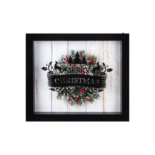 This frame will be a focal point of your room’s decor with 18 warm white lights. Perfect on your end table mantel or even given as a gift. Features – black-framed Christmas picture frame. This wall art has a 3-dimensional design. Reads “Merry Christmas” printed with acrylic on the front panel.