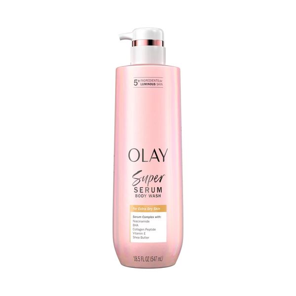 Rejuvenate extra dry skin with Olay Super Serum Body Wash. With 5+ skincare ingredients, Olay Super Serum Body Wash for Extra Dry Skin, provides 5 visible skincare benefits- it hydrates, firms, smooths, brightens and evens! Olay Super Serum Body Wash combines skin care ingredients, moisturizers, and advanced skin-delivery technology to give you visibly improved, luminous skin in 14 days. This body wash is formulated with Olay Super Serum technology: Niacinamide, BHA, Collagen Peptide, Vitamin E, and Shea Butter. It’s dermatologist-tested and free of phthalates and silicones. Directions: Simply lather with a puff and rinse.