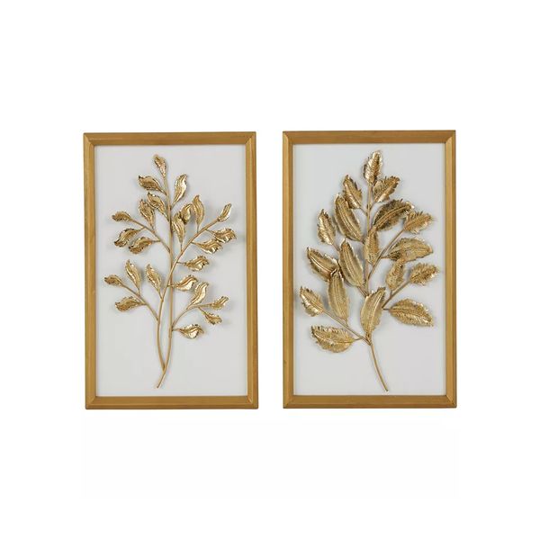 Hang this wall art in an entryway, living room, or bedroom to create a stunning focal point. This gold colored canvas wall art comes as a set of 2. Glam style.