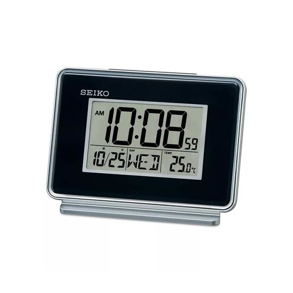 The bold face of Seiko’s digital bedside alarm clock offers the time, date and temperature as well as dual alarms.