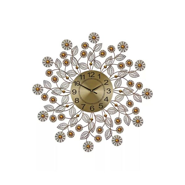 Elegant flower bronze finish wall clock made of durable metal and citrine color crystals will look great in any room in your home. This gold-tone analog face clock will give your wall that special touch. Only needs 1 AA battery (not included).