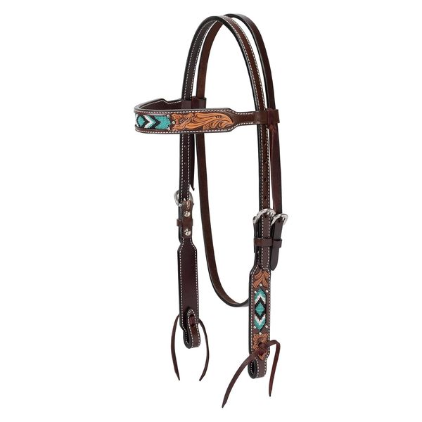 Weaver Leather Turquoise Diamond Beaded Horse Headstall, Leather Headstalls for Horses for Trail Riding, Durable Equine Supplies, Dark Oil.
